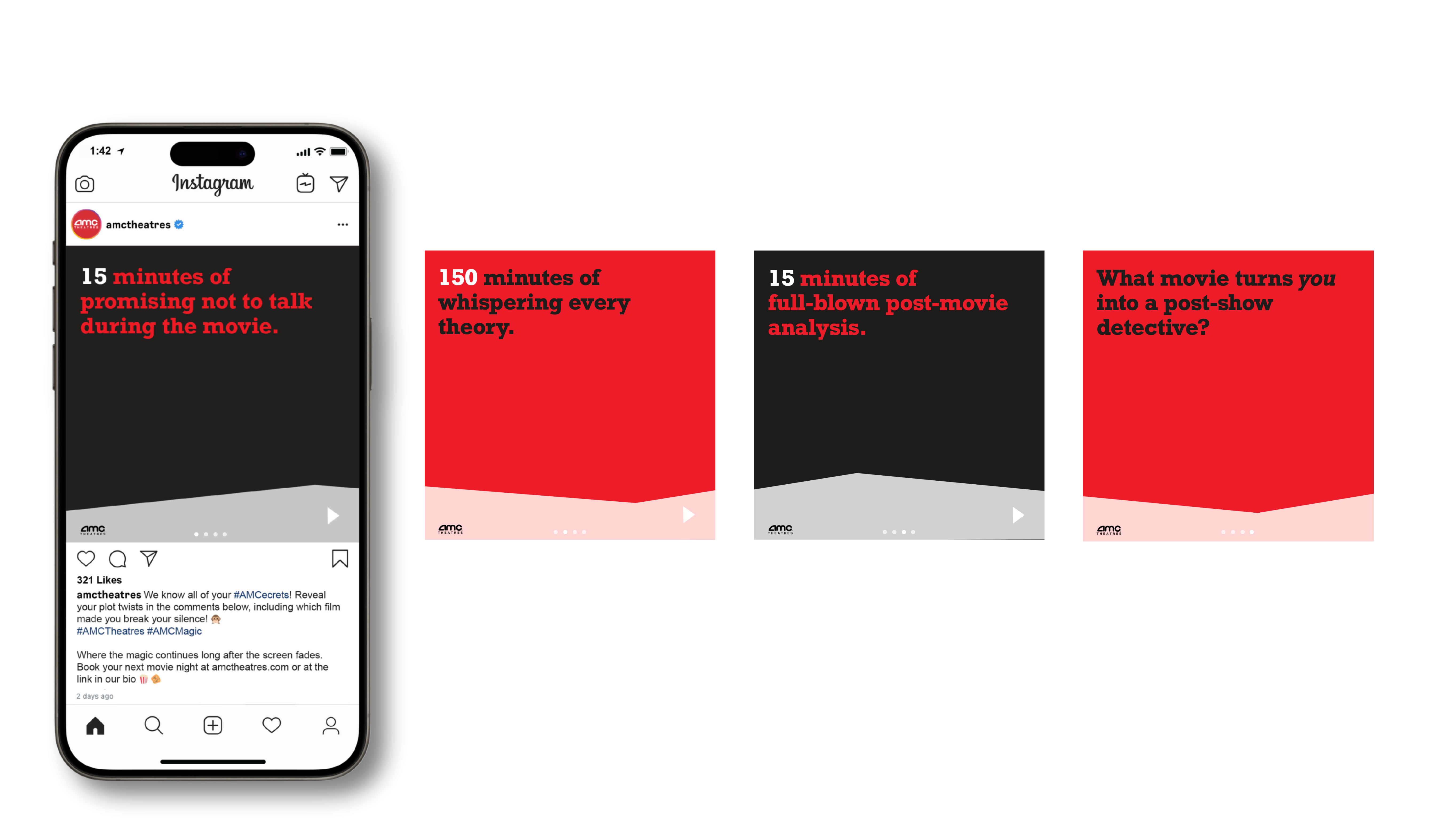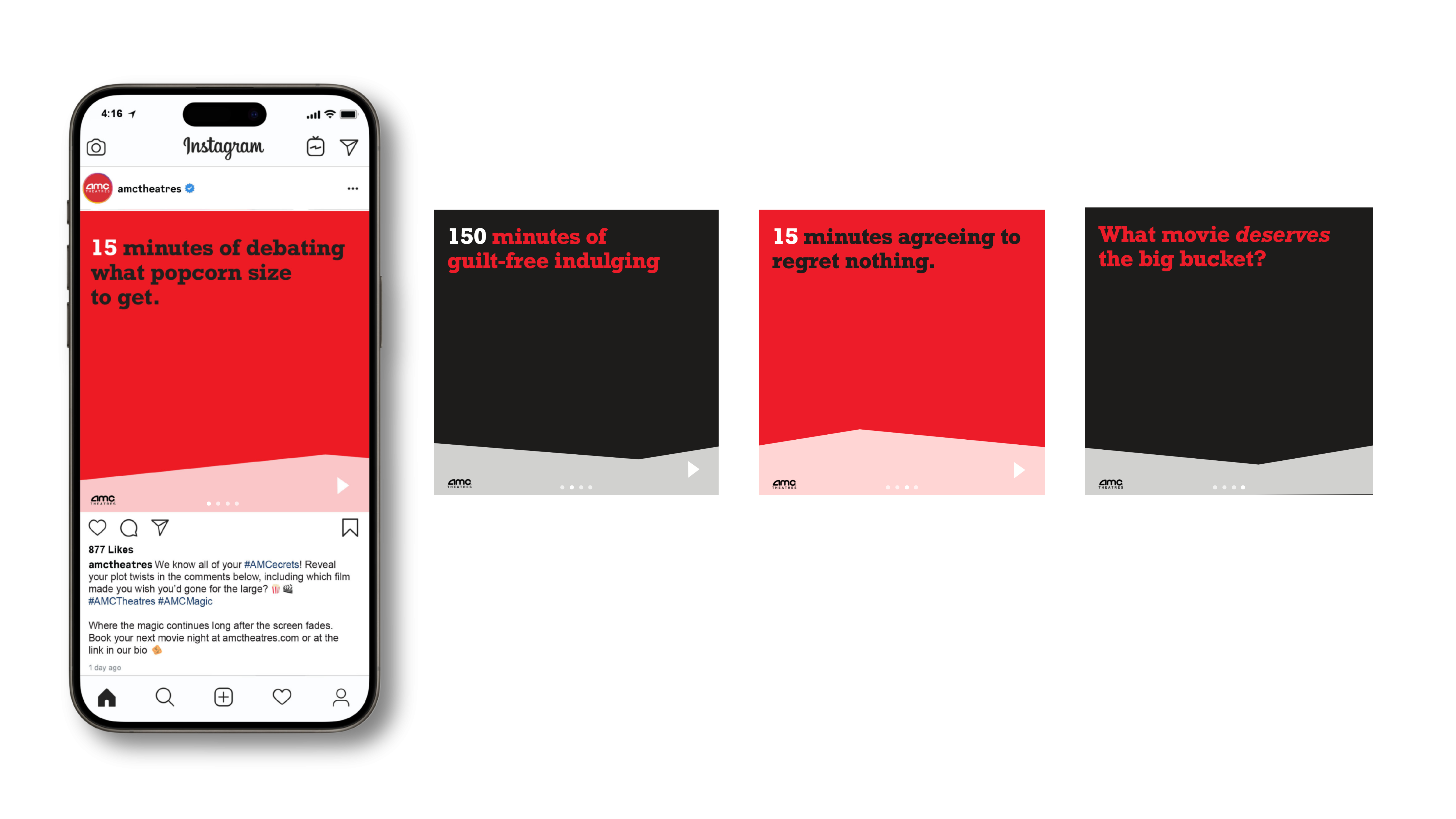 THE IDEA: POSITION AMC AS MORE THAN A MOVIE—IT’S A PLACE WHERE EVERY VISIT BECOMES A STORY OF ITS OWN, BLENDING IMMERSION, EMOTION, AND COMMUNITY INTO AN EXPERIENCE AUDIENCES WANT TO RELIVE AGAIN AND AGAIN.