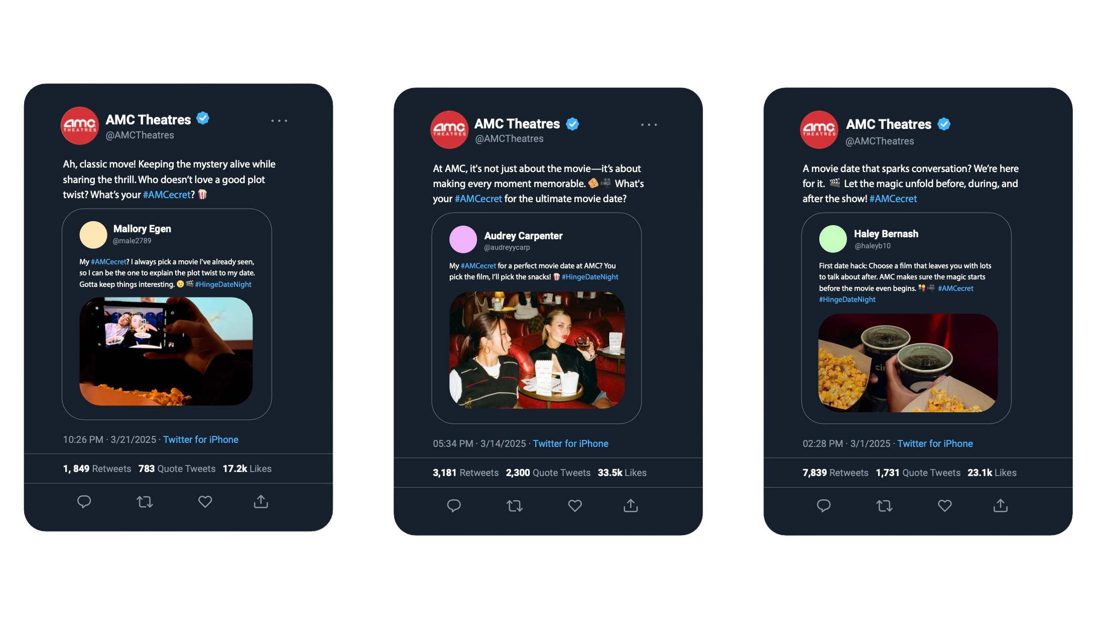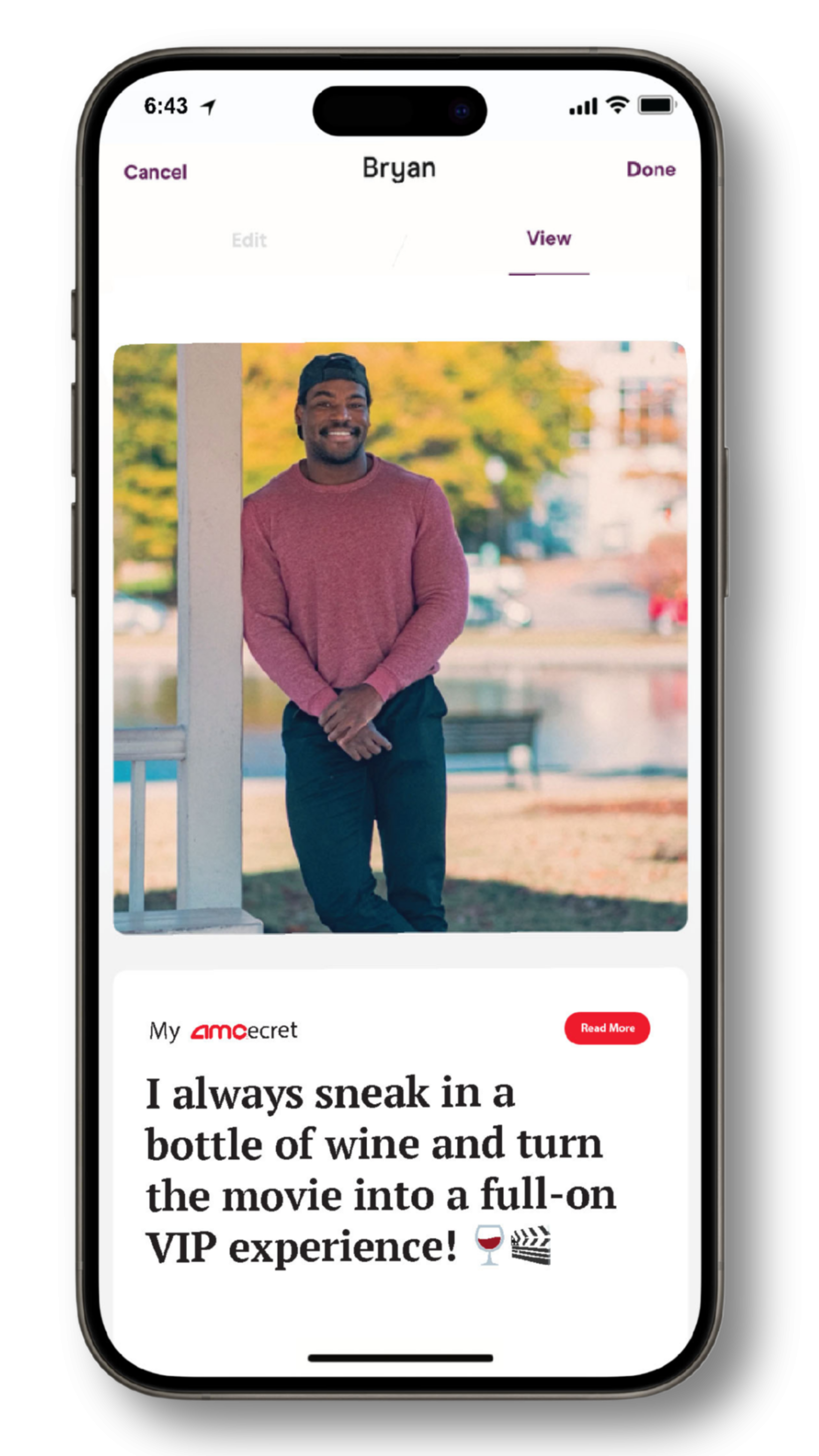 THROUGH OUR PARTNERSHIP WITH HINGE, YOU CAN NOW SHARE YOUR #AMCECRET ON YOUR DATING PROFILE.