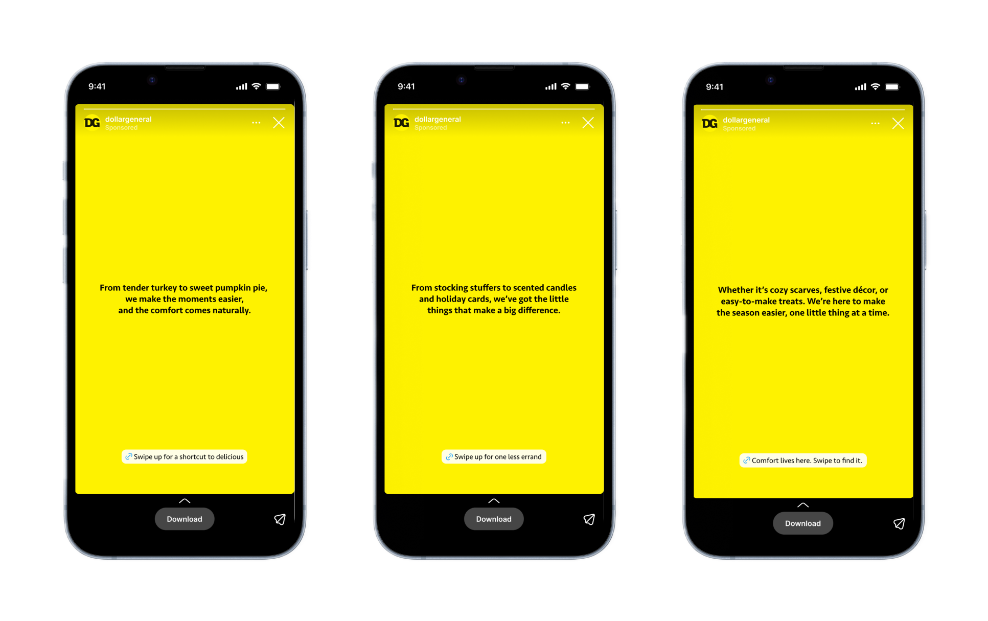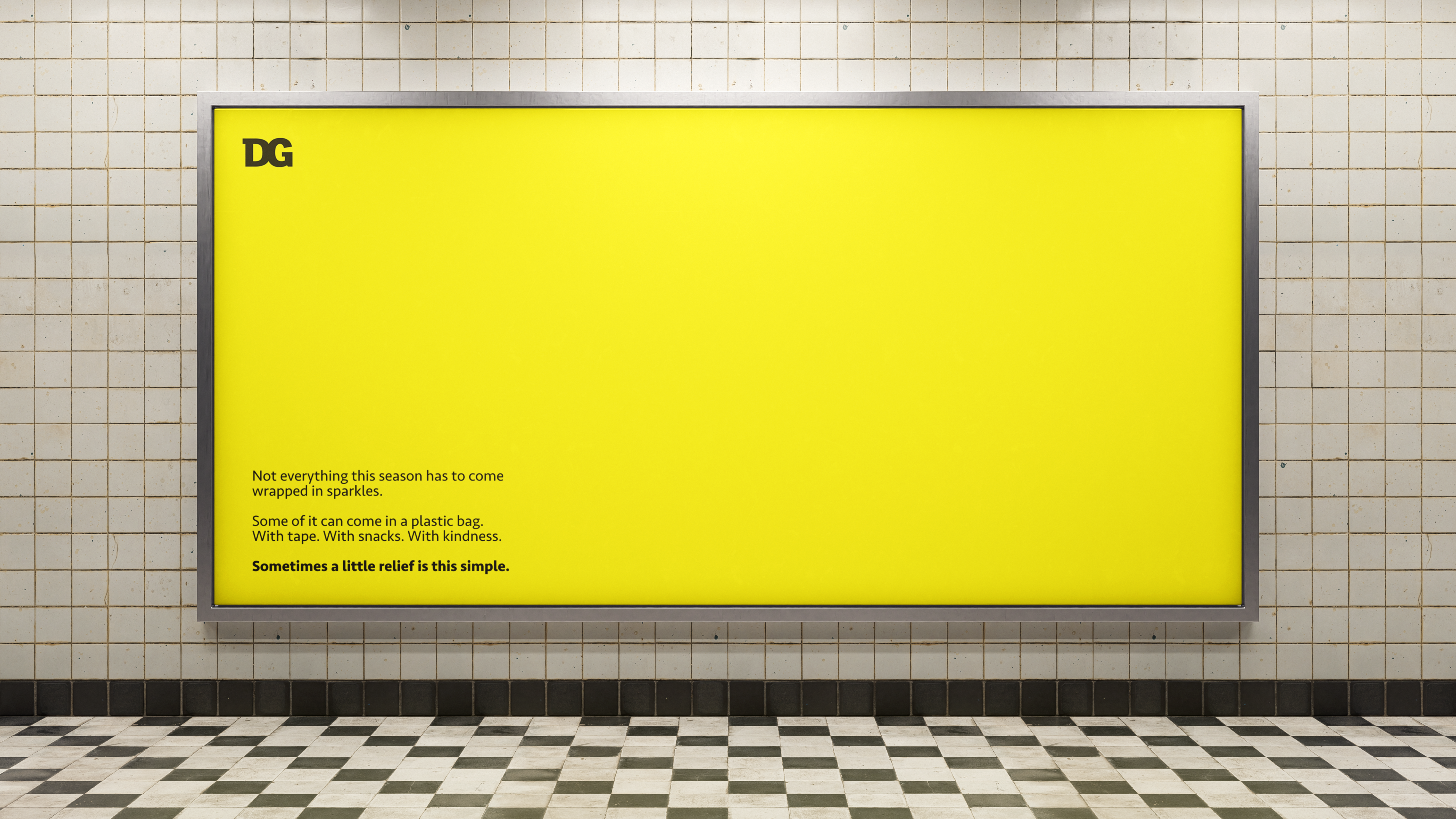 THE IDEA: THE COLOR YELLOW EVOKES SEROTONIN. BUT IT’S NOT JUST HAPPINESS — IT’S THE EXHALE MOMENT. DOLLAR GENRAL YELLOW REPRESENTS THE PRACTICAL SOLUTION THAT CUTS THROUGH HOLIDAY CHAOS.